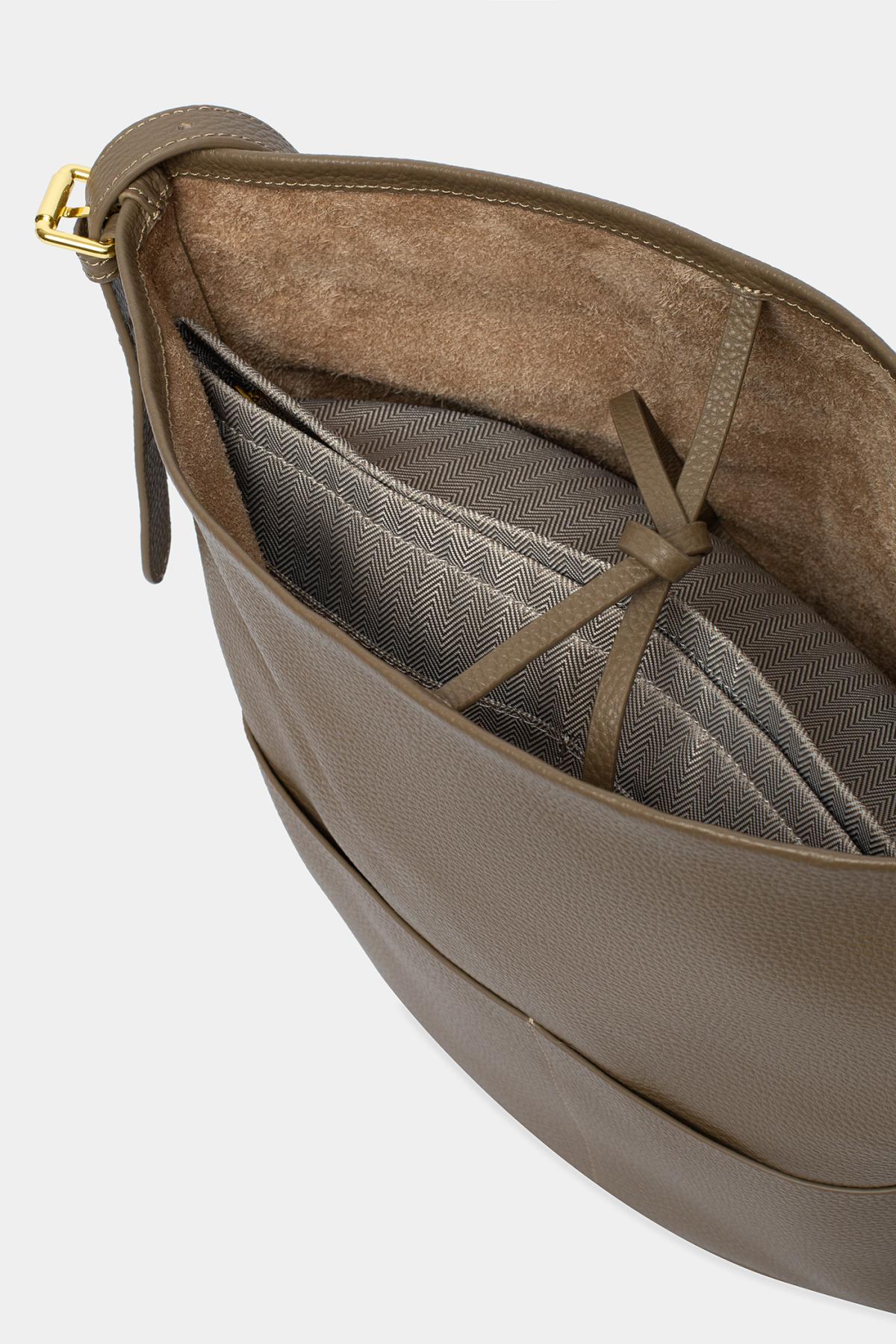 Сумка тоут в нежном кофейном оттенке выполнена из 100% натуральной кожи. Модель идеально подходит для повседневных городских образов благодаря своей вместительности и комфортной мягкой ручке.