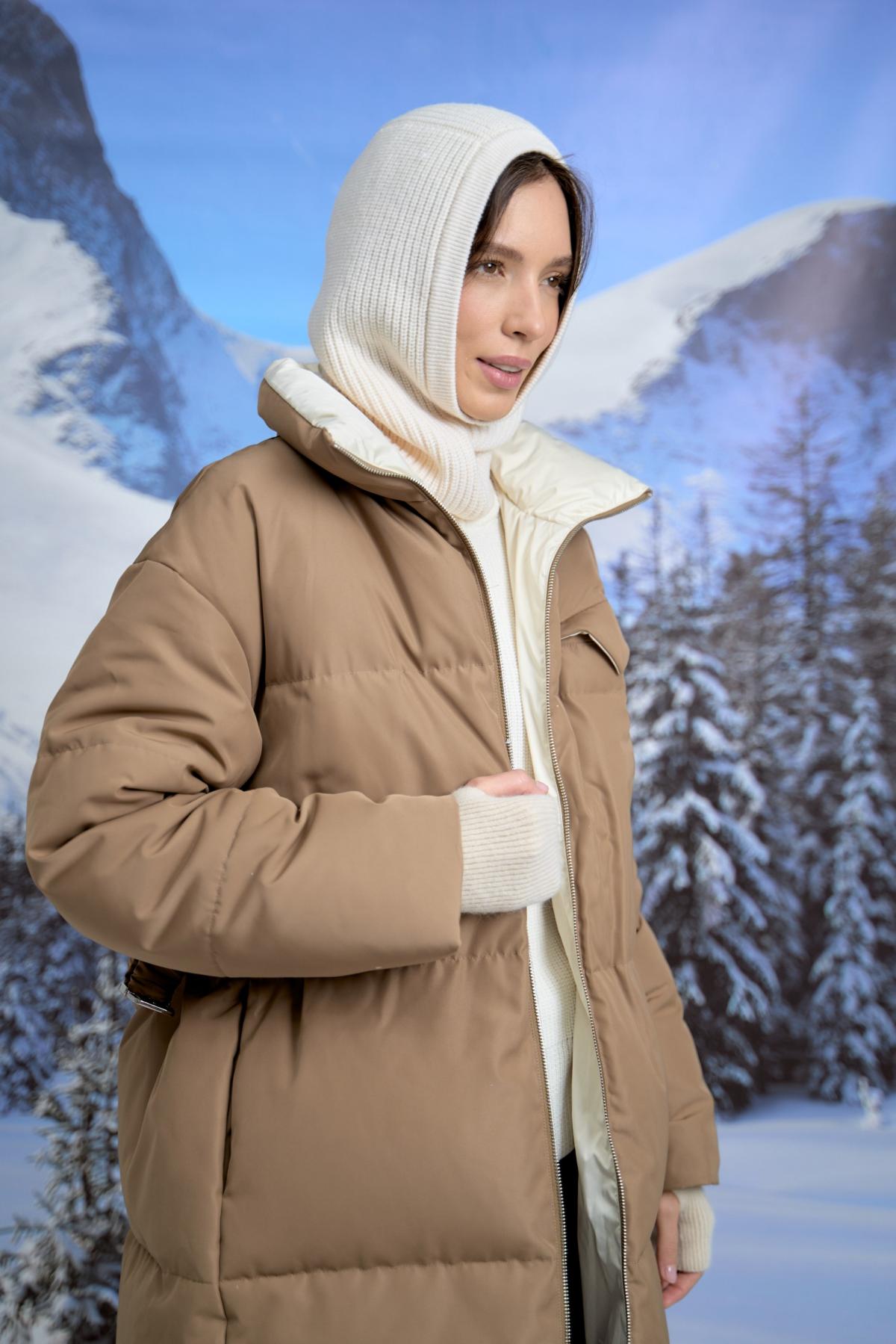 Капор — стильный и функциональный аксессуар, который заменяет одновременно и шапку, и шарф. Капор мелкой вязки создан из смеси шерсти и кашемира, такая ткань отлично сохраняет тепло и свободно