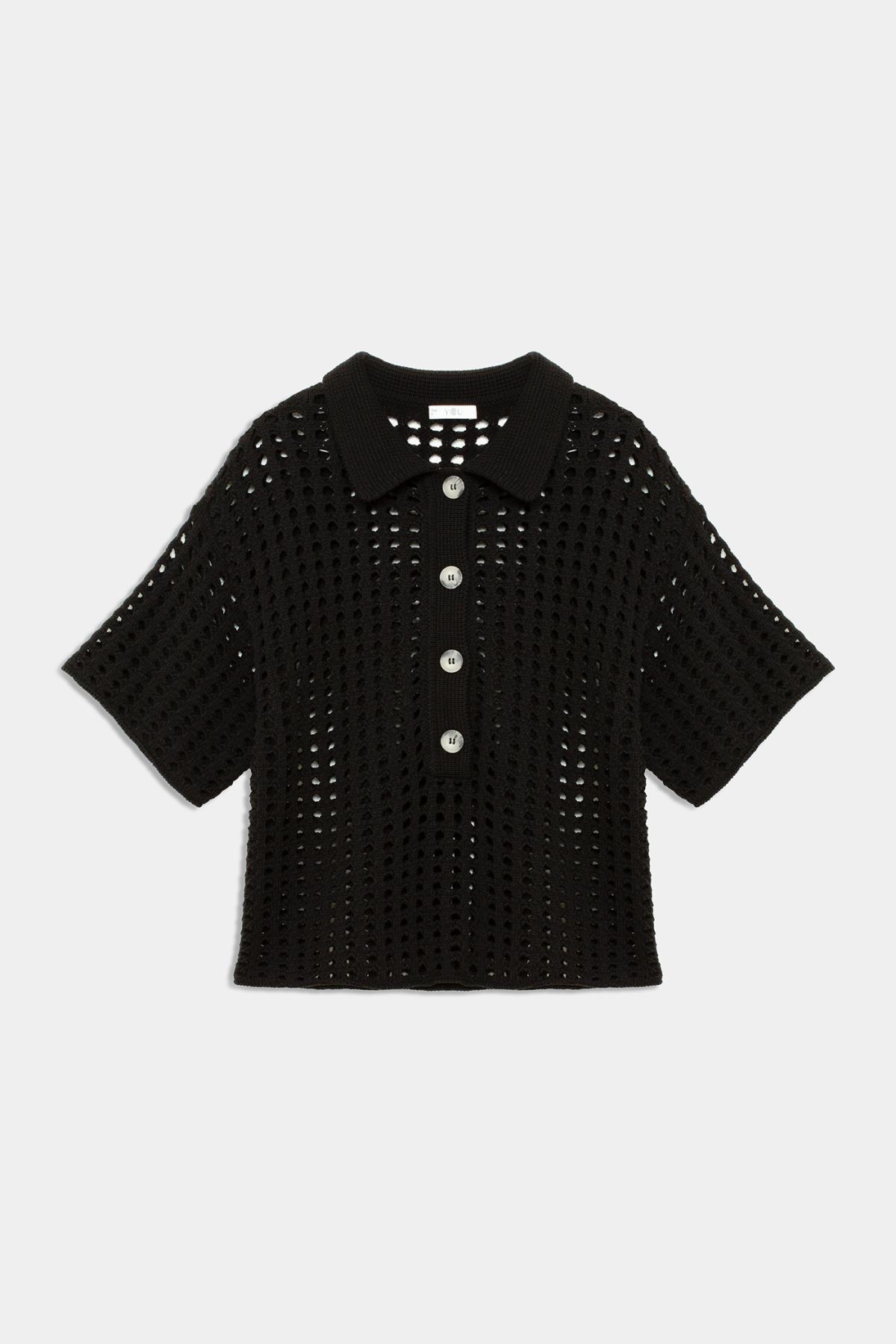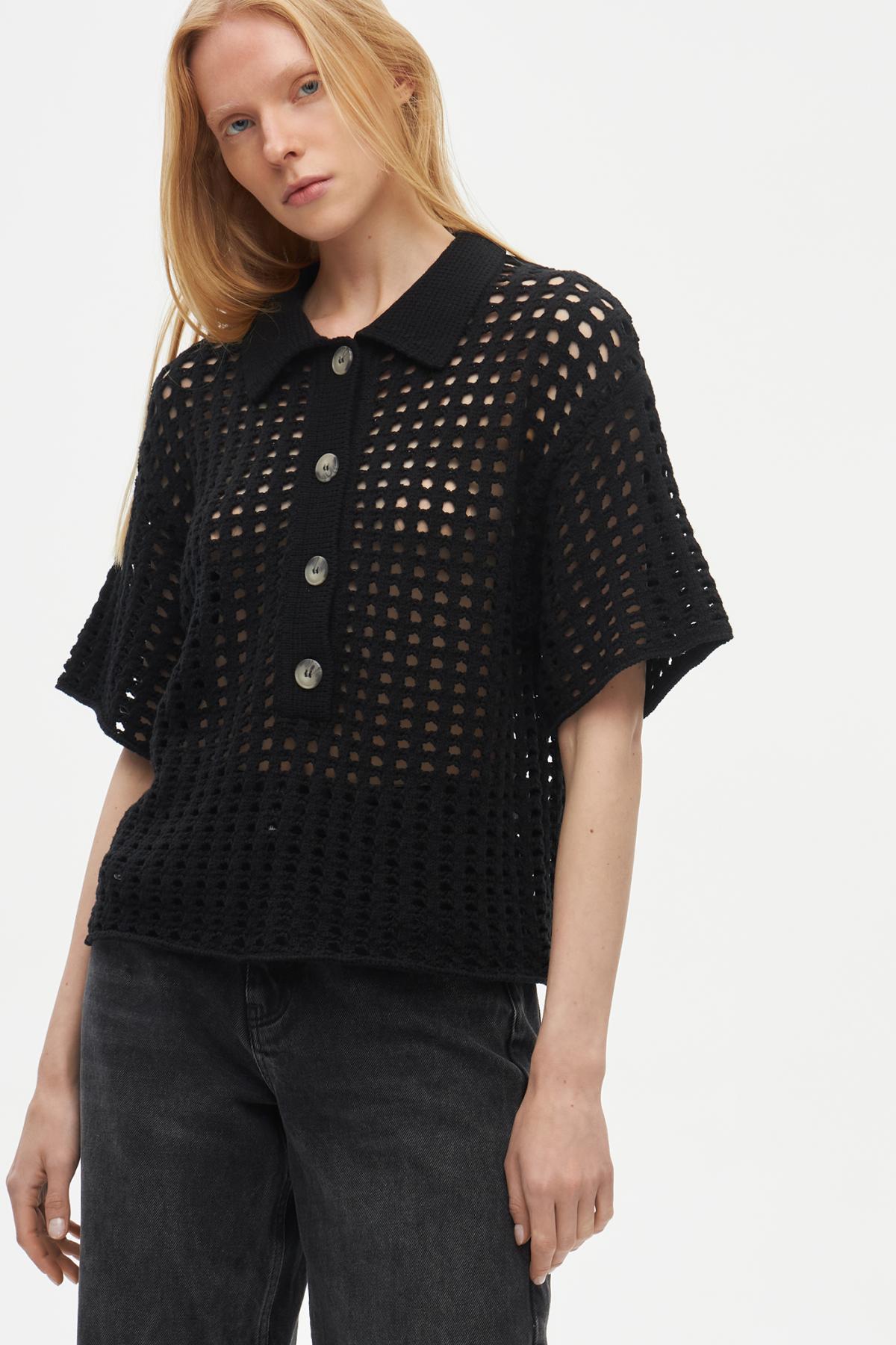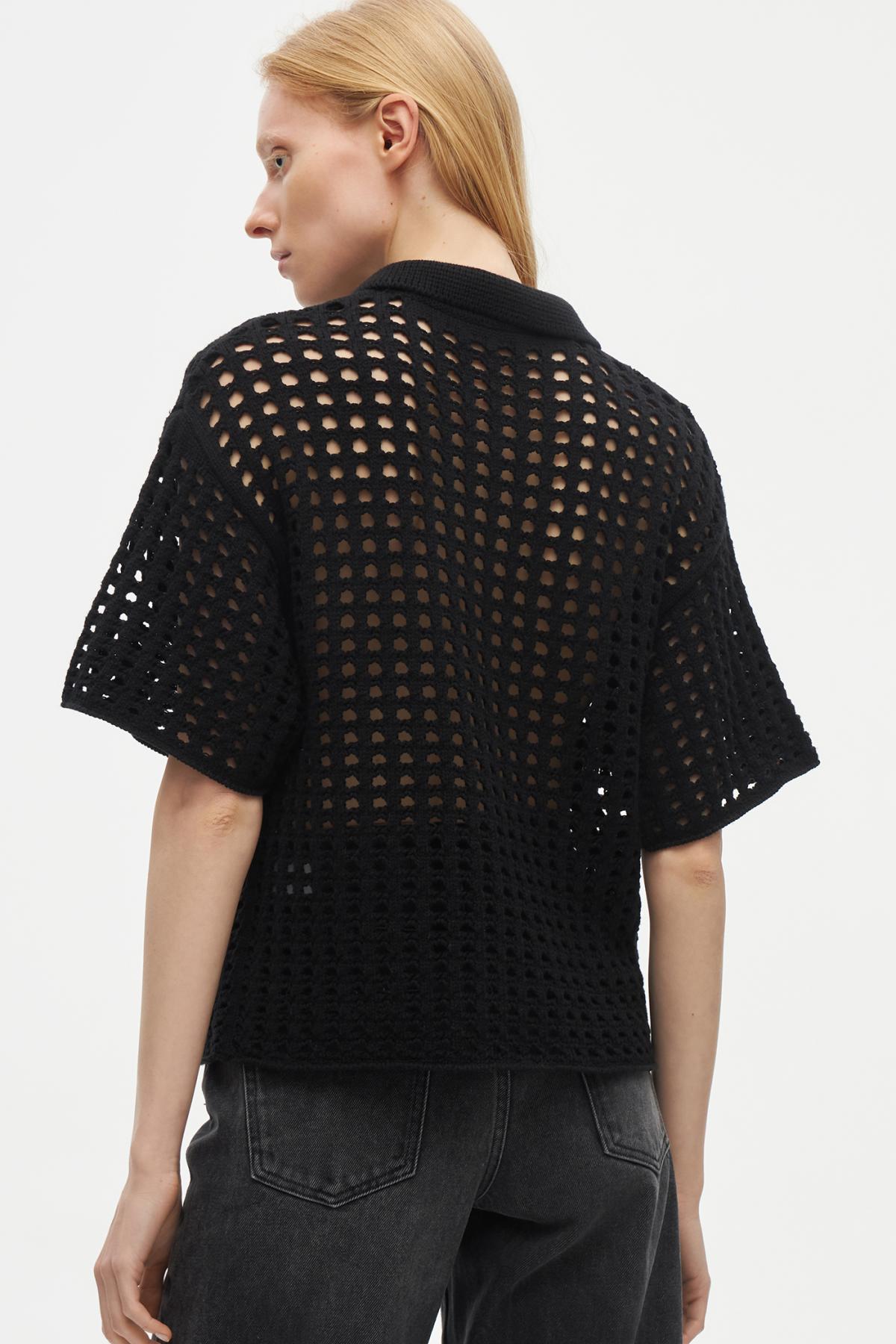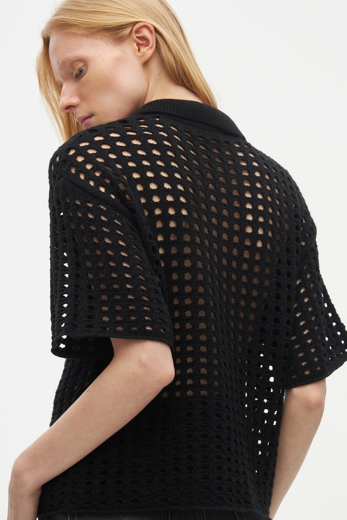Рубашка поло с перфорацией создана, чтобы быть акцентом в любом повседневном образе. Выполнена из плотной ткани, которая отлично сохраняет объемную форму. Модель имеет прямой крой, широкие