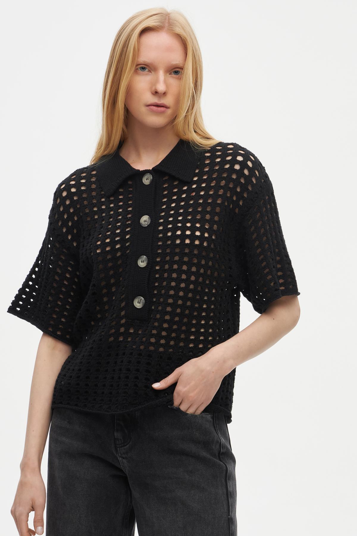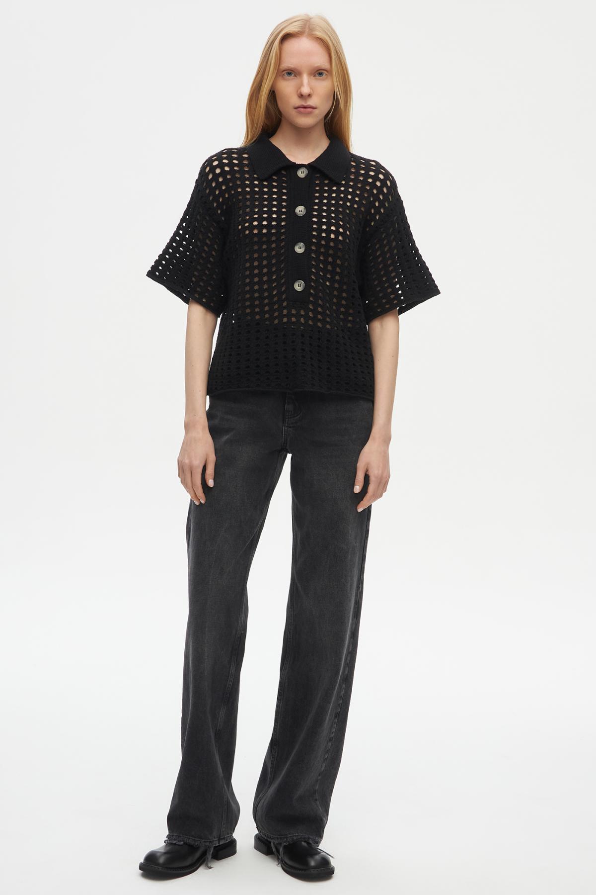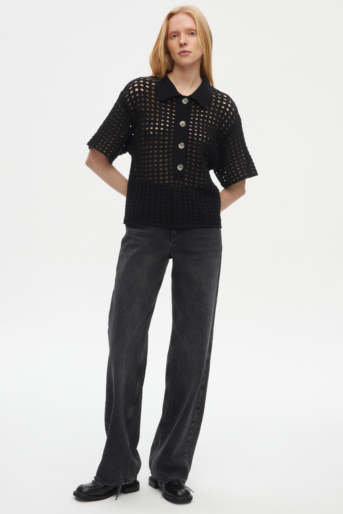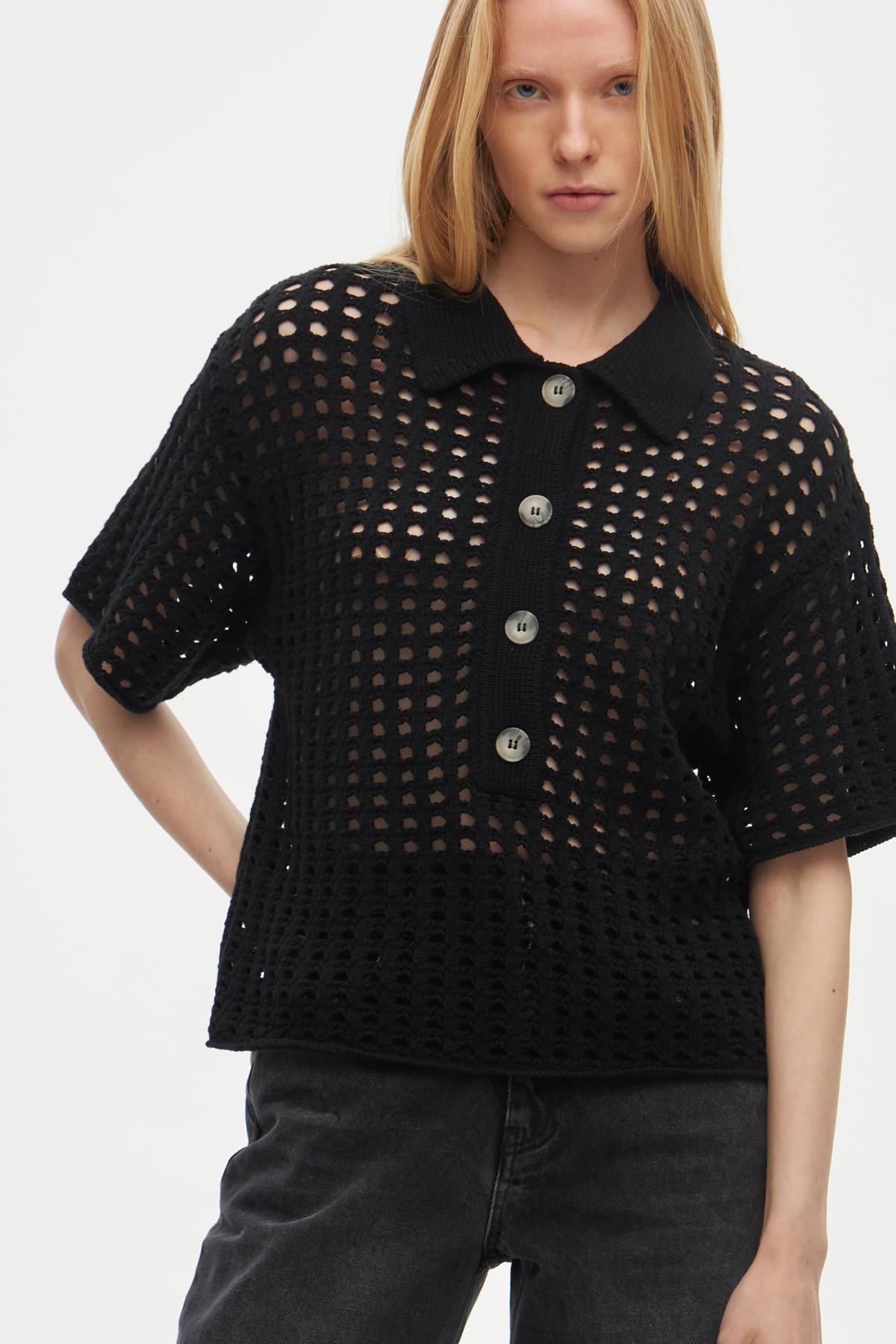 Рубашка поло с перфорацией создана, чтобы быть акцентом в любом повседневном образе. Выполнена из плотной ткани, которая отлично сохраняет объемную форму. Модель имеет прямой крой, широкие